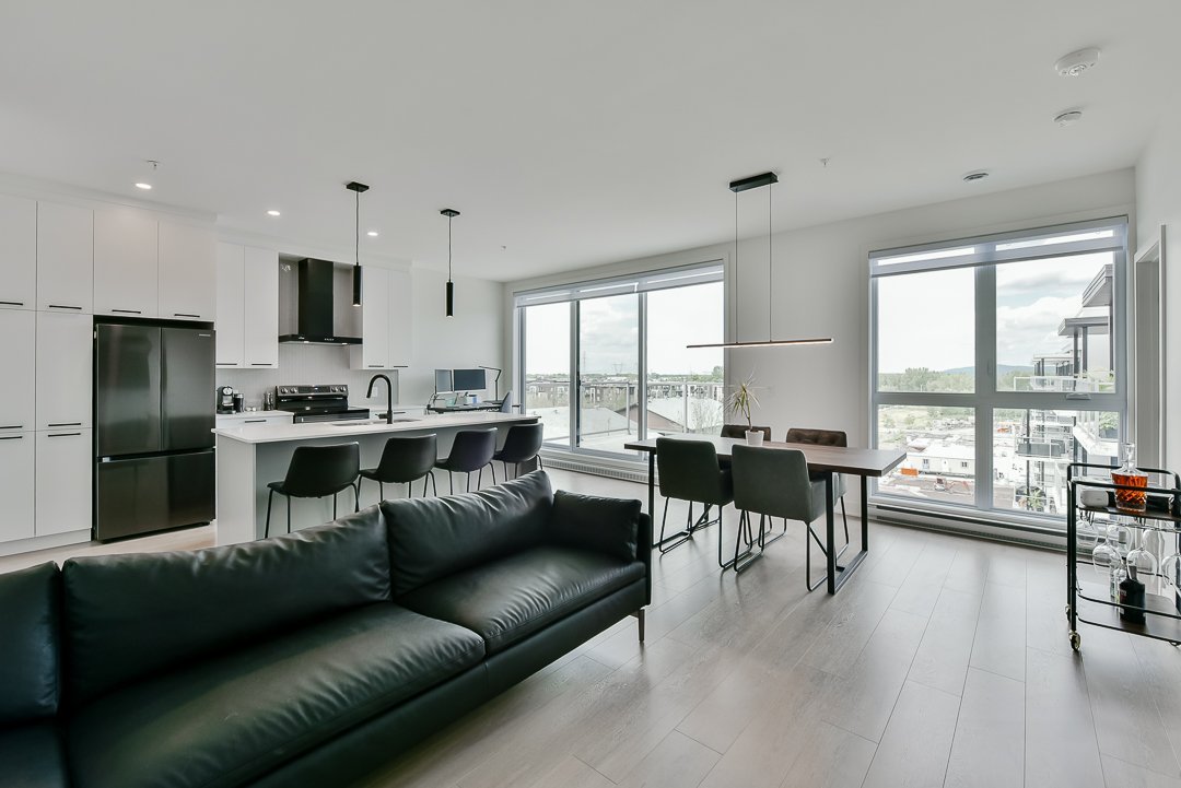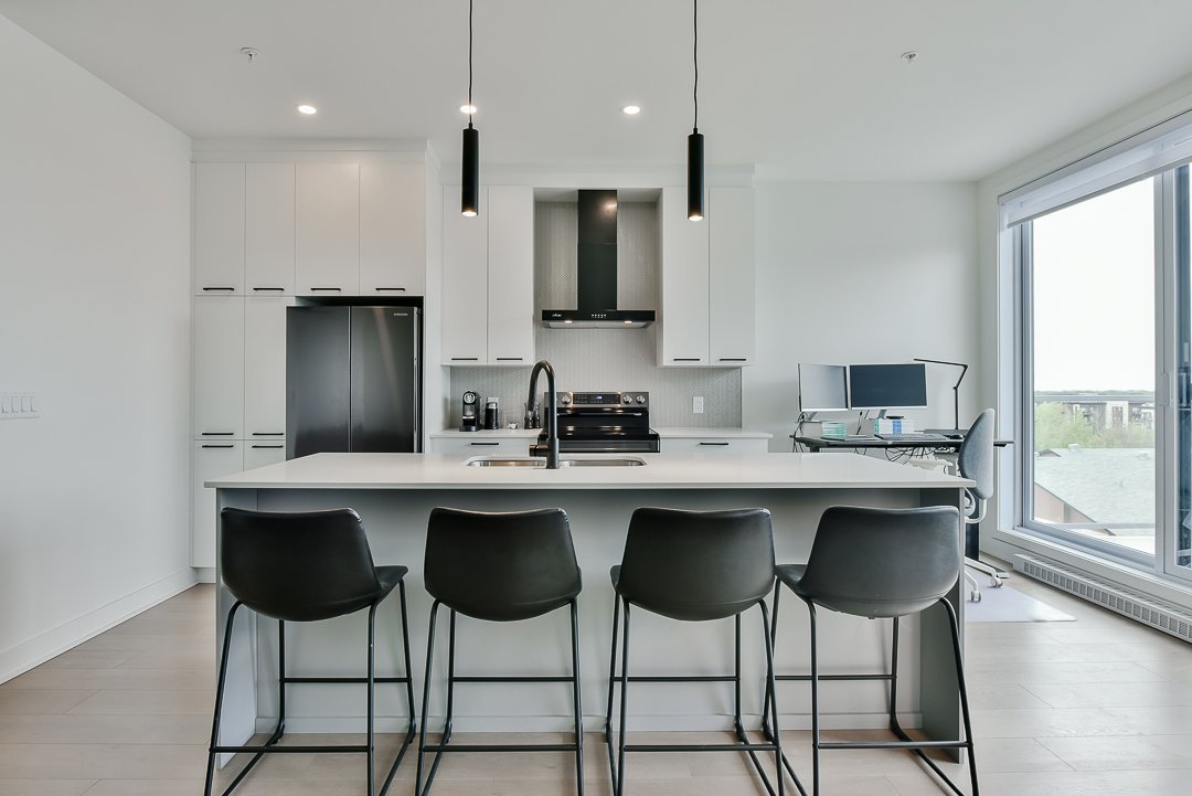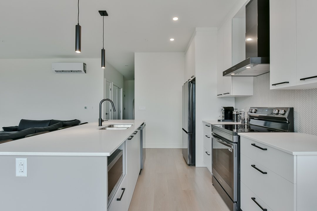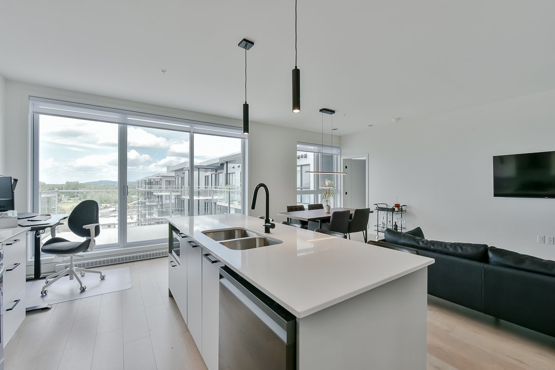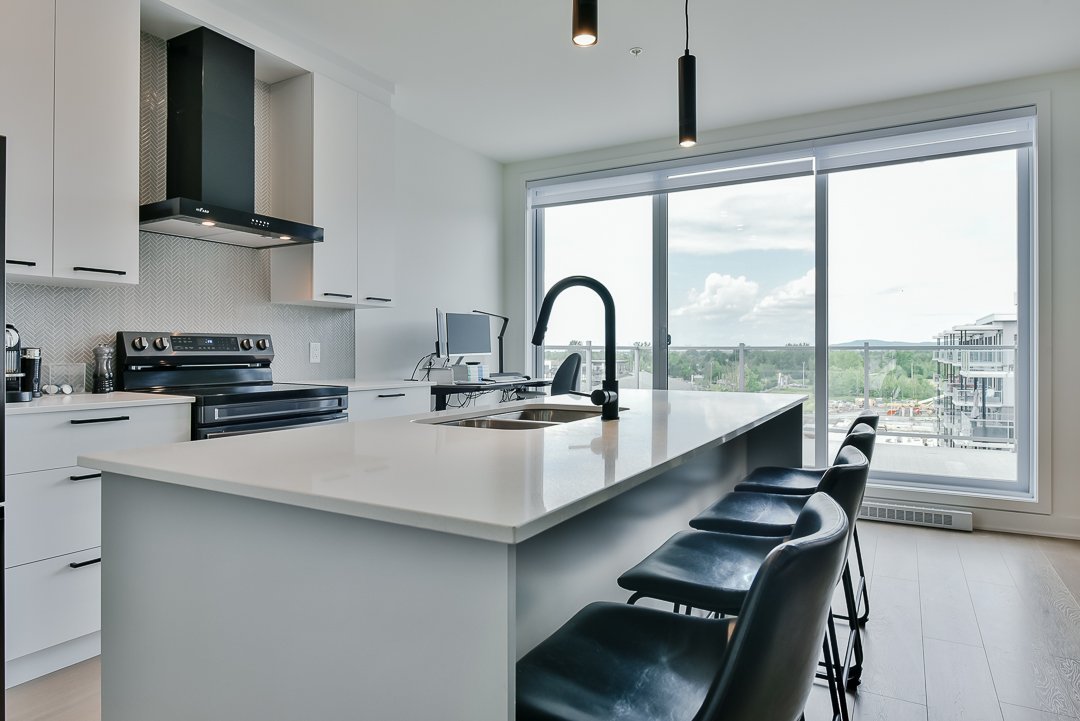 This corner unit, nestled on the top floor, offers unmatched privacy and exceptional panoramic views of Montreal, fireworks, and the majestic Mount Saint-Bruno. With indoor parking that includes storage space and a Tesla charger, this home combines convenience and luxury. The new home warranty is still in effect, ensuring continuous peace of mind.