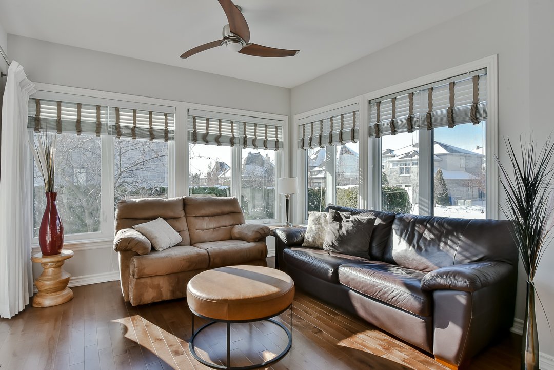 The sunroom allows you to fully enjoy natural light while admiring the view of the golf course. Double patio doors provide access to a large terrace.
